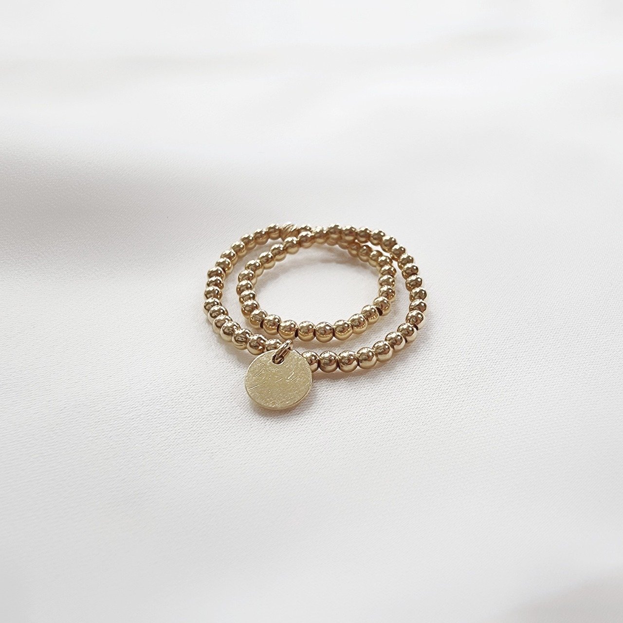 Notre bague fine Belma est un assemblage de perles et d'un médaillon en argent 925, montés sur un double tour élastiqué.