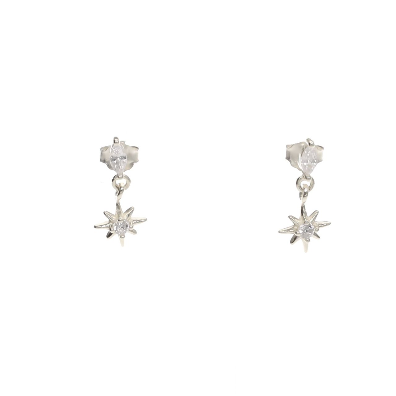 Boucles d'oreilles en forme d'étoile polaire, disponible en argent 925 et en argent 925 doré 3 microns.