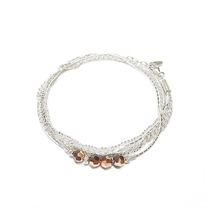 Bracelet cordon multi tours argent 925 et cristaux.
