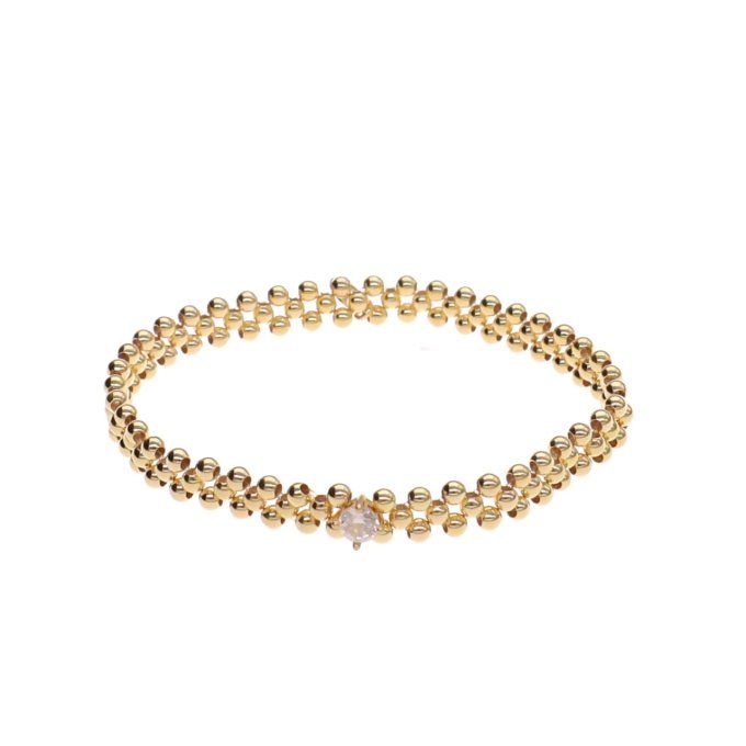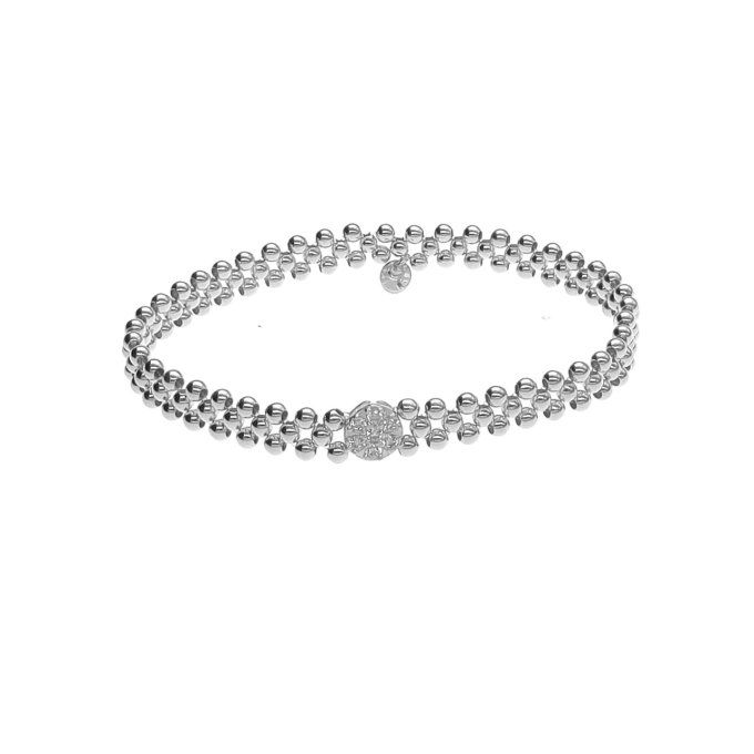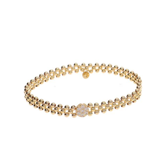 Bracelet cordon multi tours en argent 925 et pierres naturelles (pierre de soleil).
