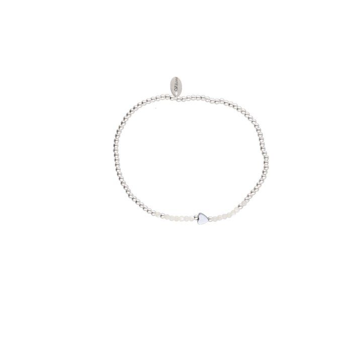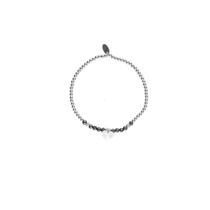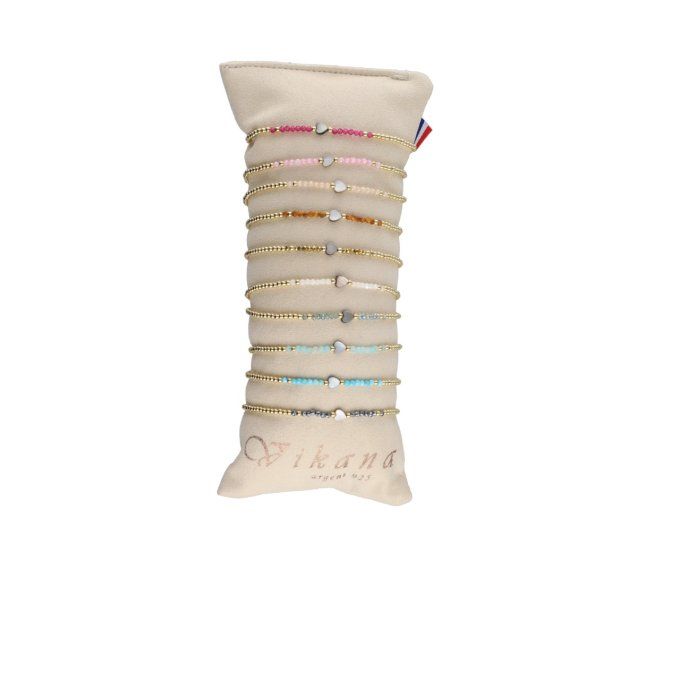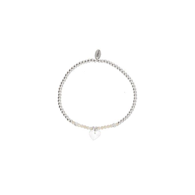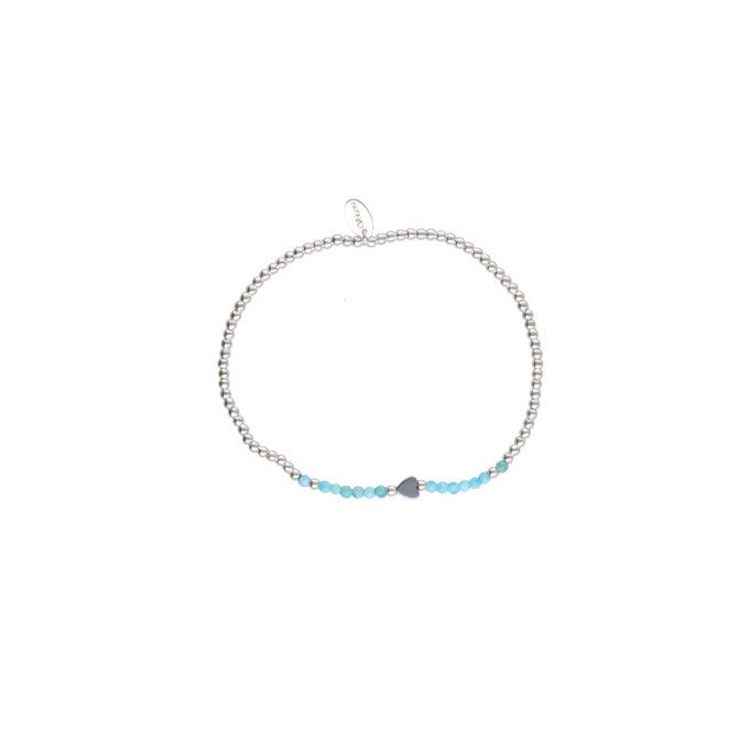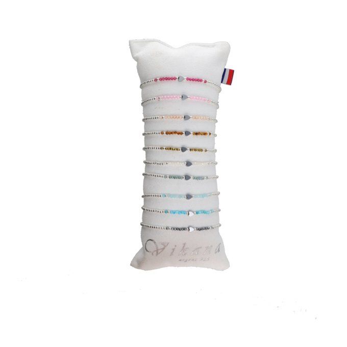 Bracelet élastique en perles de pierres naturelles, de verre et argent 925.